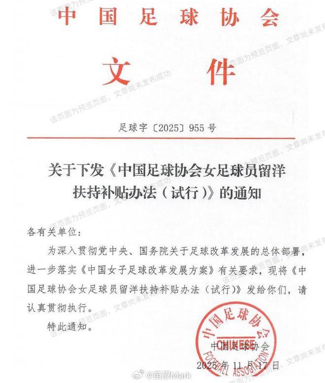 法甲直播,法甲赛程,法甲积分榜,巴黎圣日耳曼直播,法甲比分预测/专为中文用户打造的法甲资讯平台,聚焦2025赛季赛程、直播入口、积分榜与巴黎圣日耳曼焦点比赛,提供每日竞彩预测、波胆推荐及实单分析。北京时间12月22日,据国内知名体育媒体人苗原透露,中国足球协会正积极推进女足国际化发展进程,拟于2025年底正式推出《女足球员留洋补贴试行办法》,该政策将设三年试行期,旨在鼓励更多优秀女足球员赴海外高水平联赛锻炼,提升竞技水平和国际竞争力。根据披露内容,中国足协将依据球员所效力联赛的等级、个人出场率以及俱乐部在联赛中的最终排名等多个维度,实施分级分类的财政补贴机制,单人每赛季最高可获得60万元人民币的补贴,若代表俱乐部参加欧洲女子冠军联赛(UEFA Womens Champions League)正赛并完成出场,还可额外获得10万元奖励,即单赛季累计最高可达70万元。