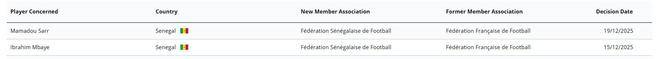 根据国际足联球员会籍转换系统的官方记录,斯特拉斯堡足球俱乐部中后卫马马杜-萨尔(Mamadou Sarr)与巴黎圣日耳曼边锋易卜拉欣-姆巴耶(Ibrahim Mbaye)已正式完成国籍转换程序,将其代表的国家由法国变更为塞内加尔。这一决定标志着两名年轻才俊在国际赛场上的归属发生重要转变,也体现了塞内加尔足协近年来在全球范围内吸引双重血统青年球员战略的持续推进。